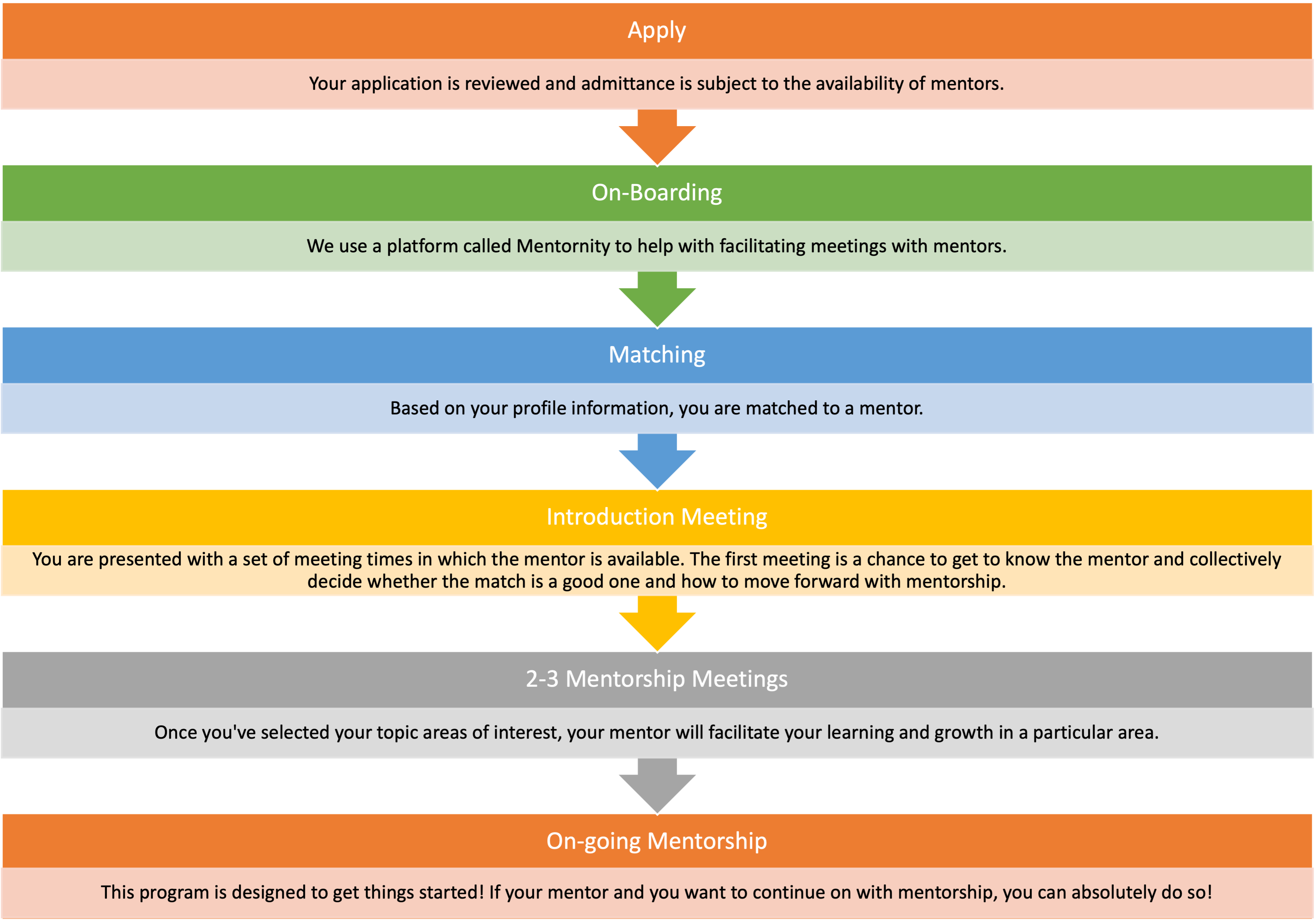 A mentorship is a relationship is one in which an individual with relatively more experience, knowledge, and connections (usually called the mentor) passes along what they have learned to another (usually called the mentee). However, such a relationship is absolutely two-way. Mentors are often in positions of leadership in their organization and through their interaction with newer members to their communities provide them with fresh perspectives and ideas to give life to their own work.